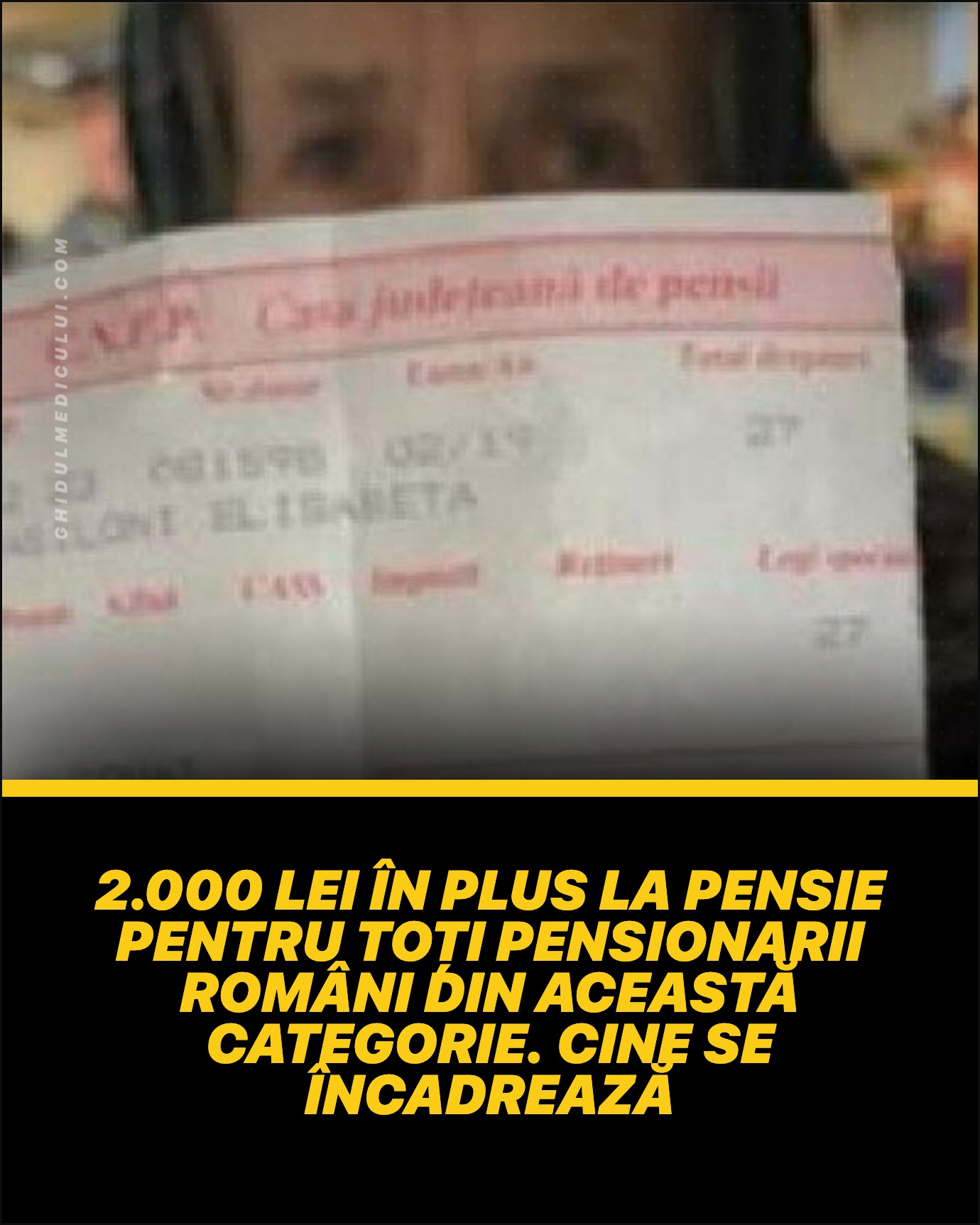 2.000 lei în plus la pensie pentru toți pensionarii români din această categorie. Cine se încadrează