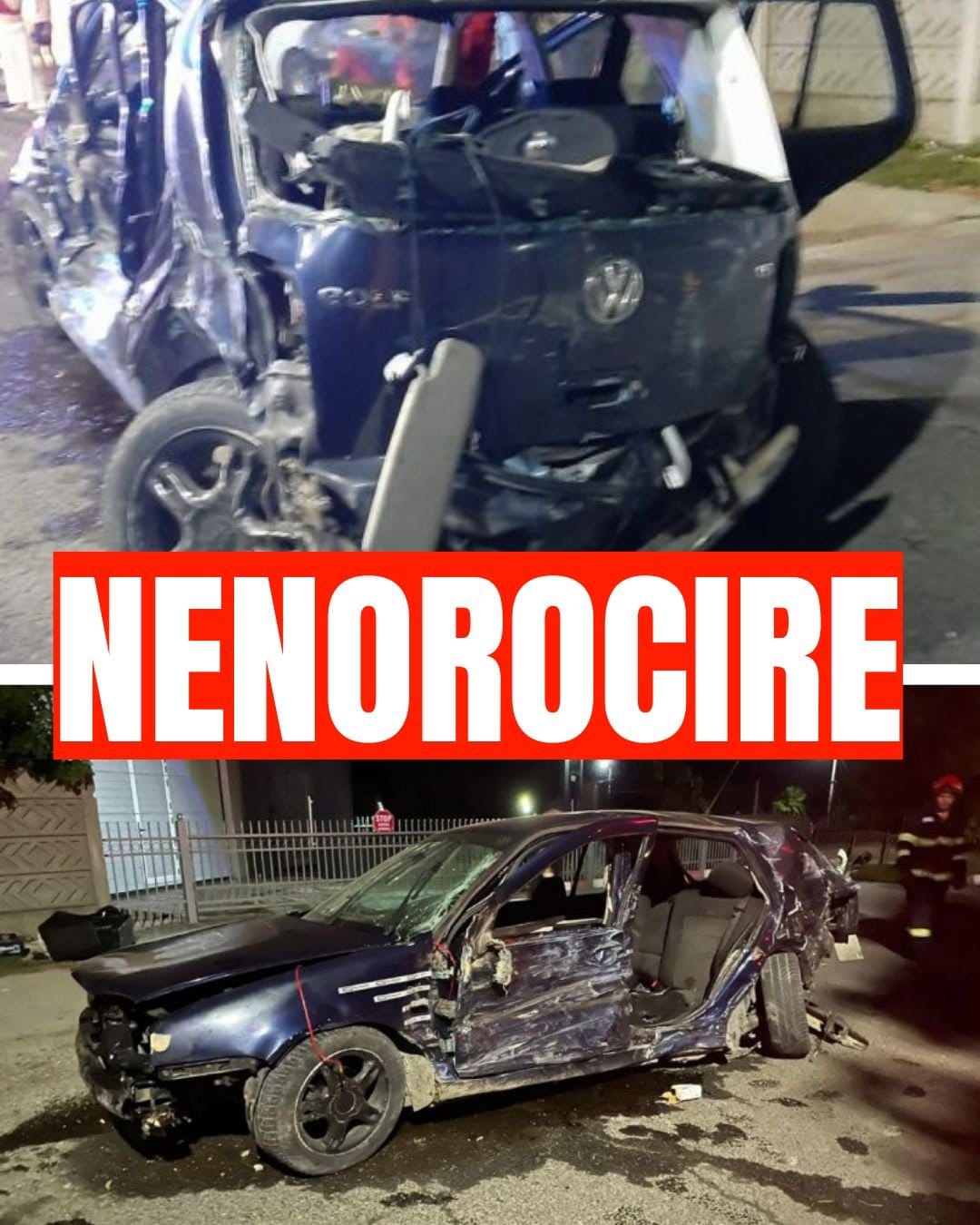 Din primele informații se pare că două autoturisme (un BMW și un Vokswagen) s-au ciocnit violent.