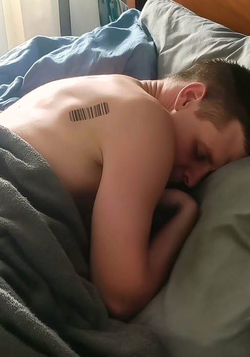Când, în sfârșit, s-a culcat, și-a întors spatele spre mine și aproape instantaneu a adormit. Am stat câteva minute așa, ascultându-i respirația. Apoi, am observat o urmă pe spatele lui, slabă dar evidentă. M-am apropiat și m-am uitat mai atent. Era un cod de bare.