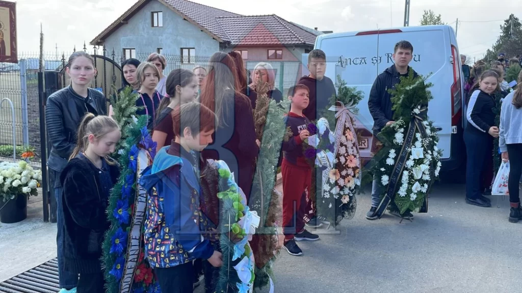 Doi ursuleți de pluș au fost așezați în mașina mortuară. Peste 300 de persoane au fost alături de familia îndurerată, aducând zeci de coroane și sute de trandafiri și sute de crizanteme albe. Slujba a fost ținută de trei preoți.