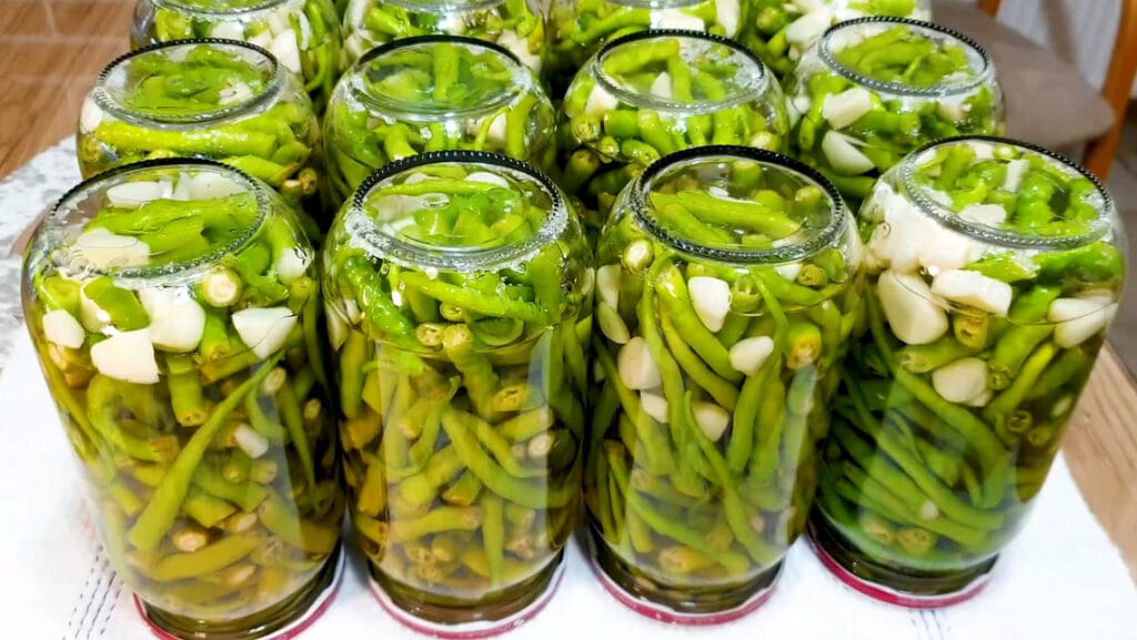 In fiecare borcan se pune o lingura de sare grunjoasa, jumatate de lingura de zahar, o lingurita de acid citric (sare de lamaie) si cate 100 ml otet.