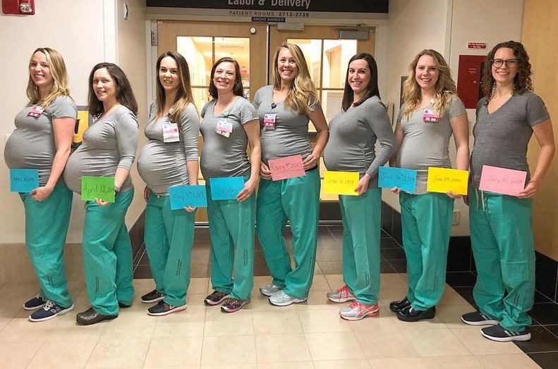 Unitatea medicală din Portland a făcut publică această situație neașteptată printr-o fotografie postată pe Facebook, în care cele opt femei purtau uniforma de asistente și țineau în mână un cartonaș cu data nașterii bebelușului. Această coincidență a adus o atmosferă specială în spital și a consolidat relațiile dintre colegi.