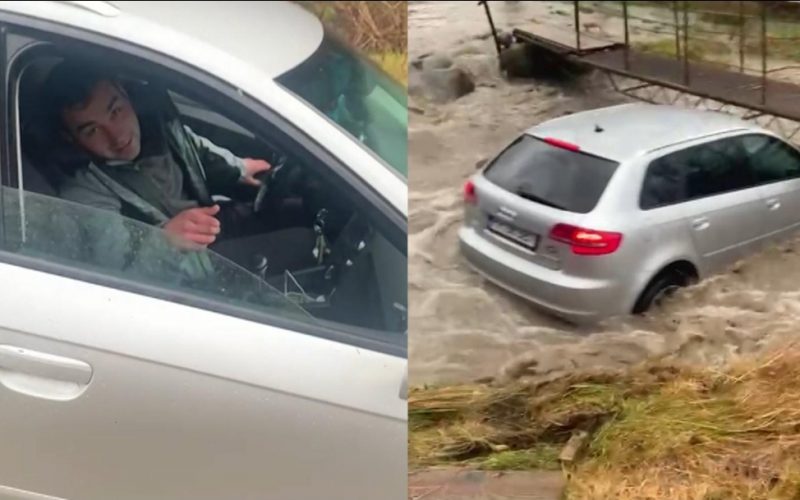 Domnul din imaginile de mai jos a reușit să îmbine, involuntar, Formula 1 cu caiacul. Mai reușiseră să facă asta rușii, cu celebrele lor ecranoplane, dar noi i-am depășit, după cum se vede în film. Spre deosebire de ecranoplanul rusesc, vehiculul nostru merge și pe ape mai puțin plane, și o face atât de bine că, dacă nu ar fi fost podețul ăla, acum naviga deja pe Dunăre.Vehiculul a apărut – ca multe alte invenții briliante din istoria umanității – ca urmare a unei erori. Când a intrat cu el în viitură, șoferul a uitat să tragă frâna de mână. Dacă o trăgea, ar fi inventat cu totul altceva, mai exact un Audi A3 care merge pe râu cu frâna de mână trasă – or la așa ceva nici rușii nu s-au gândit.