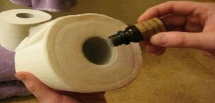 Pune cateva picturi de ulei esential in interiorul rolei. Pastreaza rola in baie. Mirosul va ramane in baie saptamani intregi