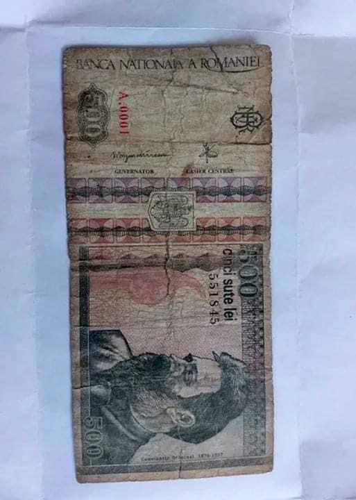 Potrivit proprietarului, această bancnotă este nu numai un obiect rar de colecție, ci și un cadou perfect pentru un iubitor de artă și bani. Bancnota cu seria A.0001 este cea mai valoroasă dintre toate bancnotele de 500 de lei emise de BNR în istoria democratică a României, fiind și prima bancnotă de acest tip printată după Revoluția din 1989.
