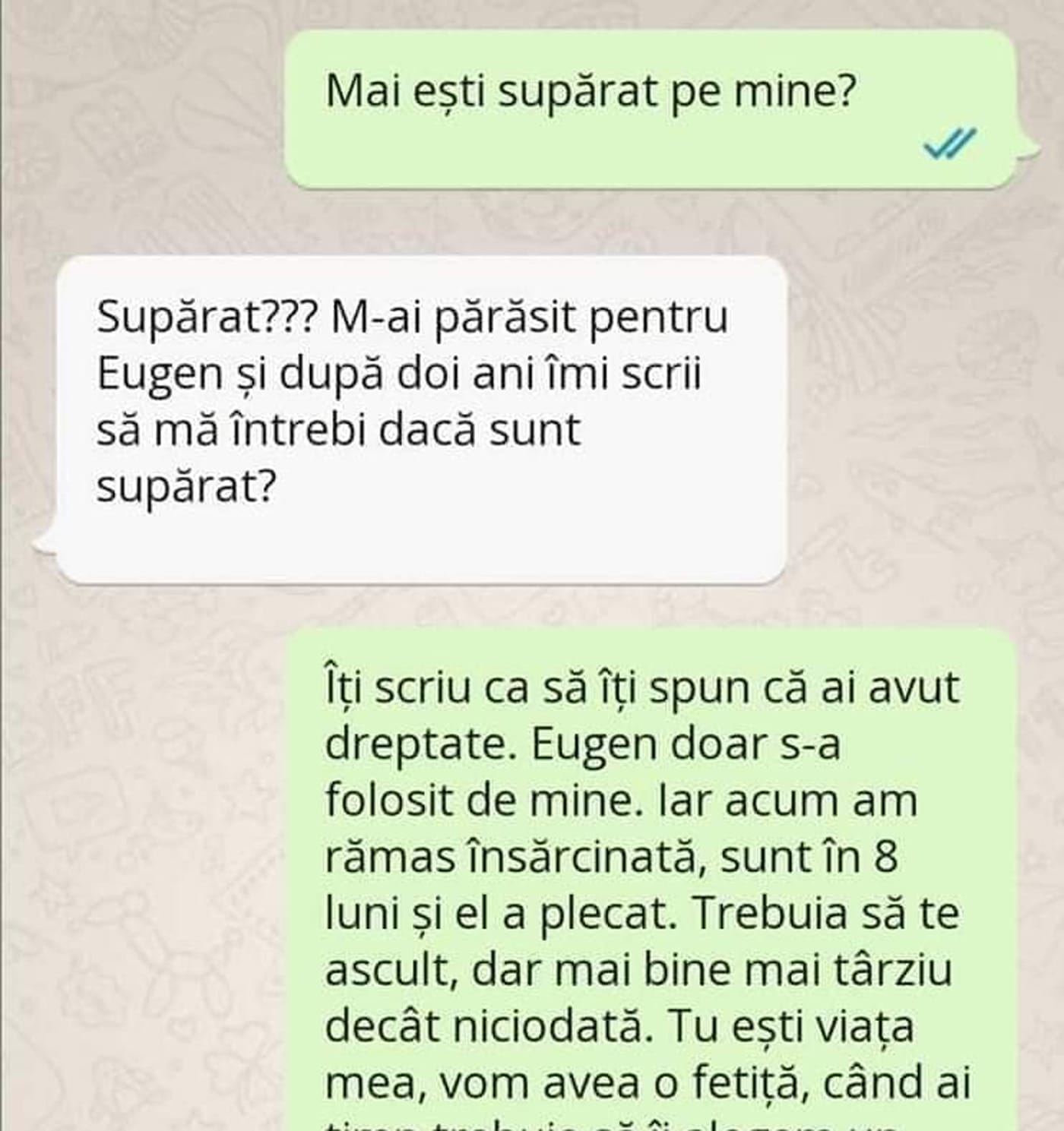 „Supărat? M-ai părăsit pentru Eugen și, după 2 ani, îmi scrii?”
