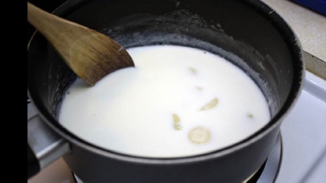 Veti turna un litru de lapte proaspat intr-o oala apoi puneti in ea cel putin 3 catei de usturoi. Il puteti toca sau zdrobi ca apoi sa-l turnati in laptele pus la foc. Turnati si cateva cuisoare zdrobite.