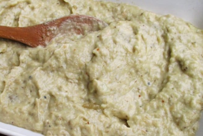 Vinetele se spală și se șterg bine. Se coc apoi la cuptor timp de 1 oră și 25 de minute, la 150 de grade. După primele 30-35 de minute se întorc pe partea cealaltă pentru a se coace bine pe toate părțile. Când sunt gata, sunt puse la răcit într-o cratiţă. După ce s-au răcit, se curăţă de coajă şi se spală bine, fără a se tăia cotorul. Se pun la scurs timp de 30-45 de minute, iar poi se taie cotorul. Se toacă ceapa foarte mărunt. Vinetele sunt puse pe un tocător de lemn și se toacă foarte bine cu un cuțit de lemn.