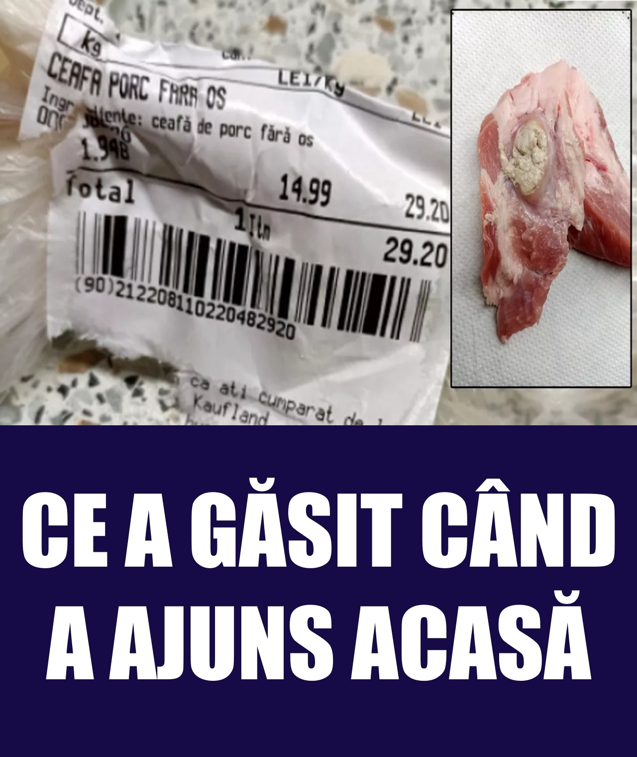 Clientul unui supermarket a rămas pur și simplu dezgustat când a deschis ambalajul în care se afla carnea de porc cumpărată. Bucureșteanul a achiziționat o ceafă fără os și a sesizat că are puroi.