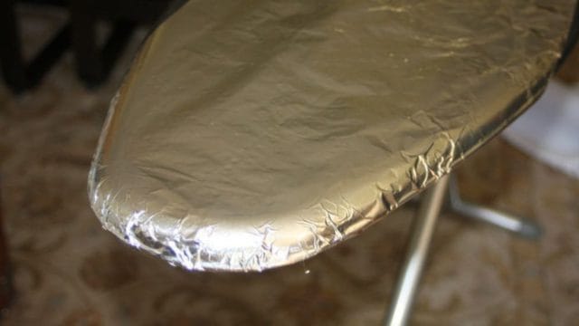 Tot ce trebuie să faceți este să puneți pe masa de călcat, deasupra husei, folie de aluminiu. Îmbrăcați-o pe toată suprafața ei, având grijă să o strângeți bine la margini.