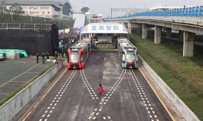 Calea ferată virtuală din Yibin, care trece prin mijlocul orașului cale de 17 kilometri, a costat aproximativ 160 de milioane de dolari și va transporta până la 10.000 de pasageri pe zi.