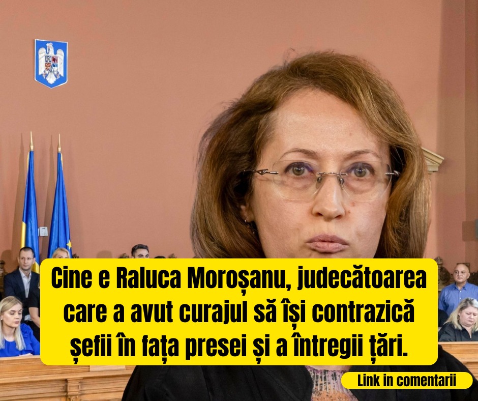 Judecătoarea Raluca Moroșanueste magistrat cu26 de ani de experiențăîn sistemul judiciar românesc, dintre care19 ani ca judecător la Secția I Penală a Curții de Apel București— una dintre cele mai importante instanțe penale din România. Ea a intrat în atenția publică joi, 11 decembrie 2025, când a intervenit în cursul unei conferințe de presă organizate de conducerea Curții de Apel București.