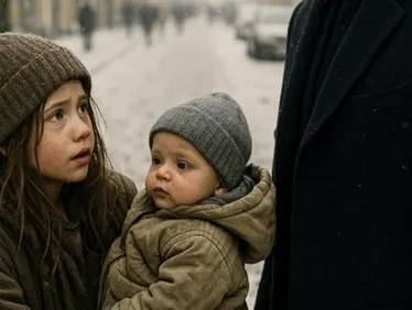 Când au ieșit din magazin, fetița strângea cutia de lapte ca pe un obiect fragil, aproape sacru. Tomi — așa avea să-l numească mai târziu — continua să scâncească, încă tremurând de foame. Ea se așeză din nou pe aceleași trepte reci de piatră, iar primul lucru pe care îl făcu fu să apropie biberonul de buzele lui. Băiețelul se agăță imediat de tetină, suptul lui disperat răsunând ca un suspin prelung. Fetița își lăsă capul pe spate și respiră adânc — ca și cum pentru prima dată în ziua aceea putea inspira cu adevărat.