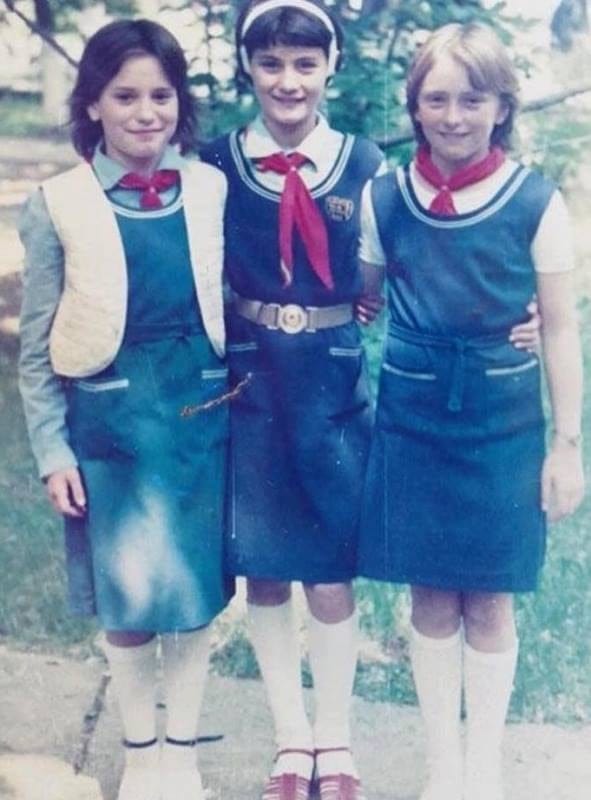 Vedeta și colegele ai au îmbrăcat din nou uniforma de elev și chiar și-au pus și cravata de pionier.