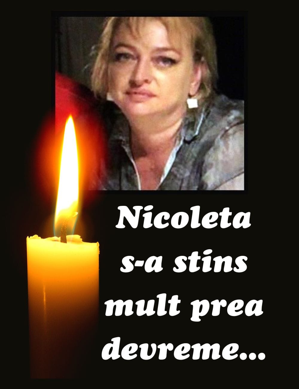 Nicoleta Ilie era un makeup artist cunoscut în Focşani. De câteva zile nu se simţea în apele ei. Nu avea poftă de mâncare şi nici putere să meargă la lucru. O depresie ar fi măcinat-o, spun medicii, şi se trata cu pastile. Ieri, în jurul orei 18:00 starea i s-a agravat şi a ajuns de urgenţă la Spitalul Sfântul Pantelimon din Focşani.