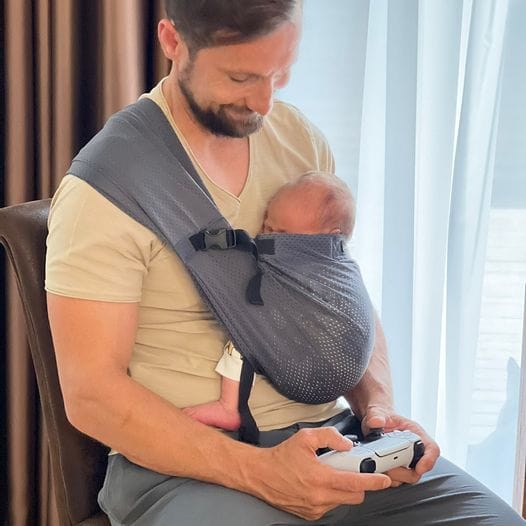 Vineri, prezentatorul Neața a postat o imagine pe Facebook care îl înfățișează ținându-și bebelușul într-un port-bebe, în brațe, în timp ce se joacă la playstation.