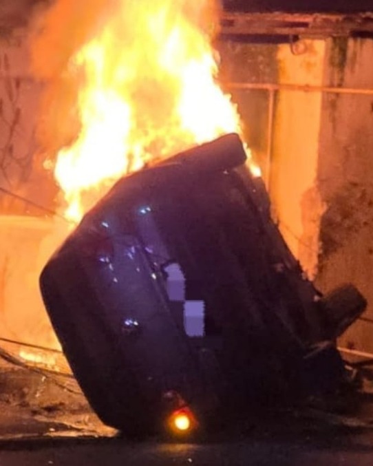 Conform autorităților, mașina s-a izbit puternic de o clădire, după care autoturismul s-a răsturnat și a fost curpins de foc. În urma întâmplării, atât șoferul, cât și tânărul de 19 ani, au sfârșit carbonizați.