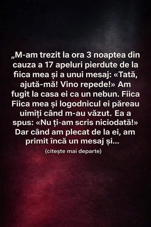 La ora 3:07 noaptea, telefonul lui Mihai a început să vibreze continuu pe noptieră. Buimac, a deschis ochii și a văzut 17 apeluri pierdute. Toate de la fiica lui, Ana. Sub ele, un mesaj scurt și tulburător: „Tată, ajută-mă! Vino repede!”