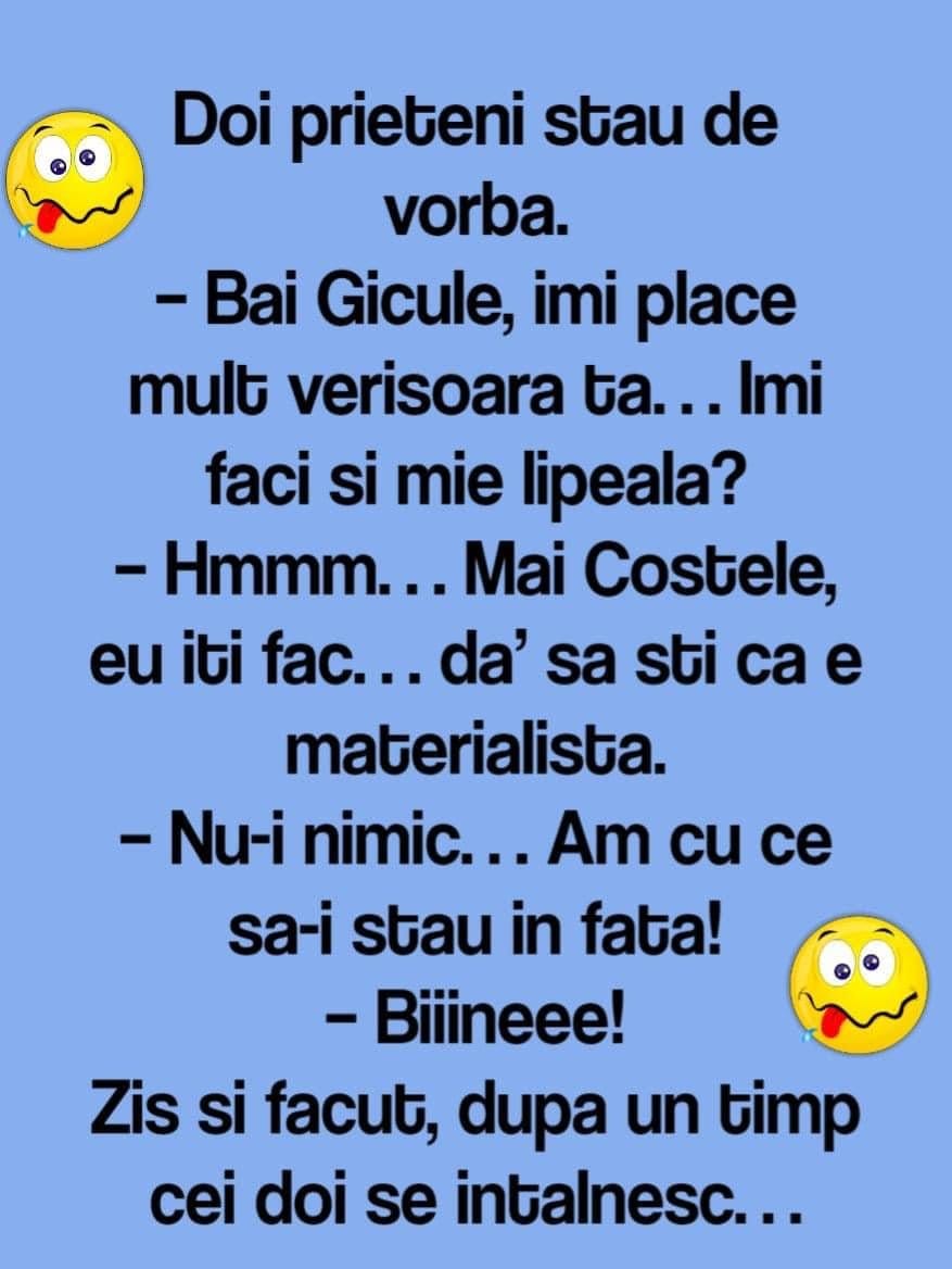 – Bai Gicule, imi place mult verisoara ta… Imi faci si mie lipeala?