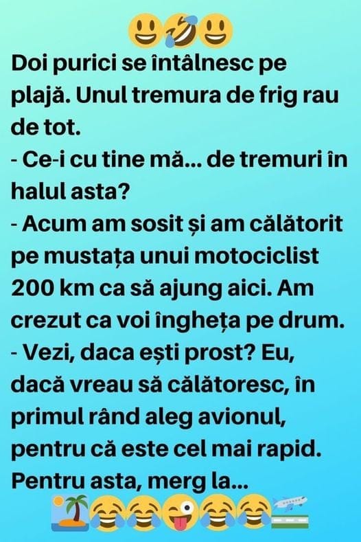 Doi purici se întâlnesc pe plajă.