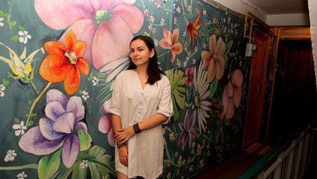 Din dorința de a trăi într-un oraș mai vesel, Andreea Gabriela Tudor a schimbat complet atmosfera din scara blocului în care locuiește, scrie Obiectiv Vocea Brăilei. Cu doar câteva sute de lei, adolescenta a pictat două etaje care, prin culorile sale, s-au transformat parcă într-o oază de natură. Pereții cu var scorojit au fost acoperiți cu flori pictate cu măiestrie de eleva care învață la Liceul de Arte “Hariclea Darclee” din Brăila.