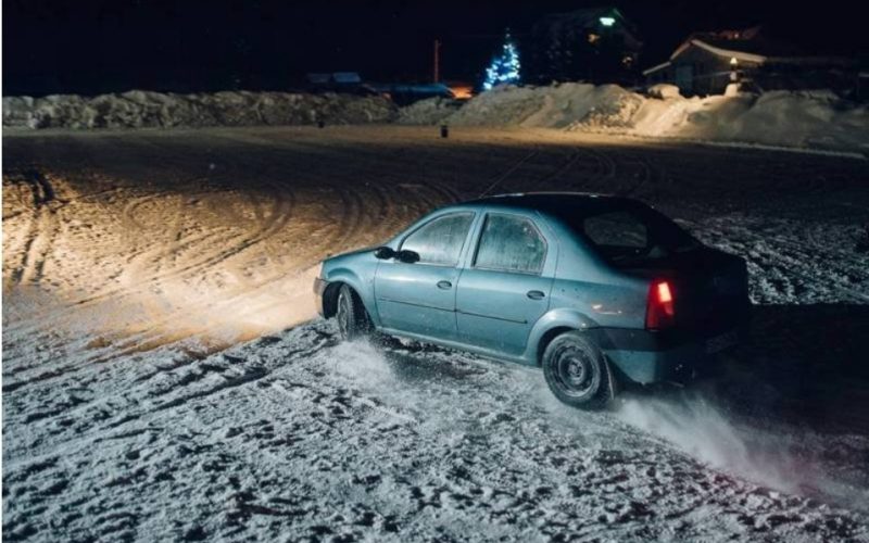 c) pornirea vehiculului de pe loc prin patinarea excesivă, în gol, a roților motoare;