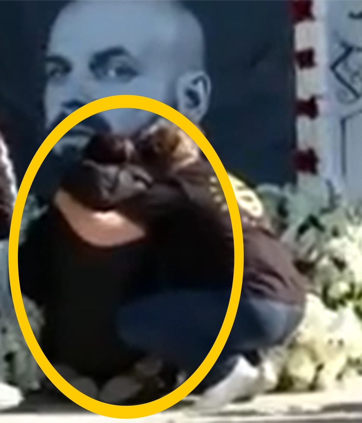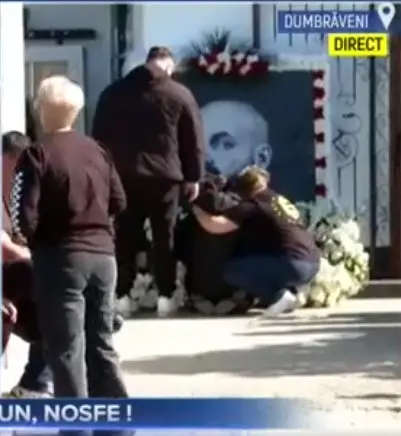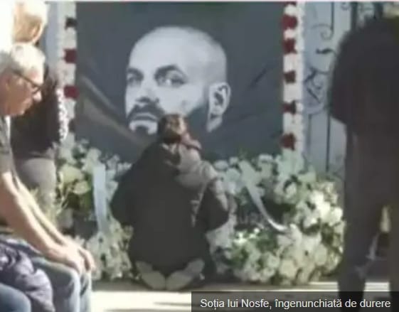 O primă imagine de la înmormântarea artistului ne-o arată pe soția lui, Mădălina, devastată pur și simplu de durerea pierderii sufletului său pereche. Femeia a îngenunchiat în fața unui portret uriaș al soțului ei, cuprinsă de suferința imensă. În zadar au încercat cei din jur s-o ridice de pe jos, căci ea nu s-a lăsat convinsă. A petrecut minute-n șir, înlăcrimată, în fața portretului soțului său.