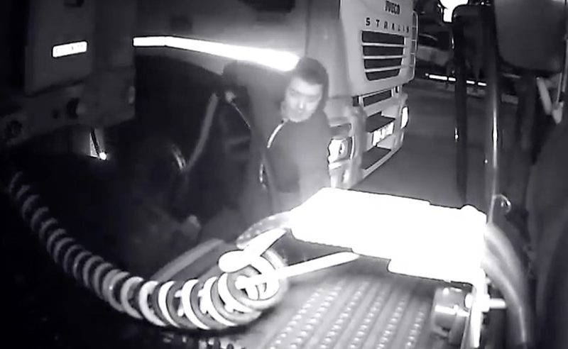 Așa a descoperit că în jurul orei 04:30, hoţul a venit să forţeze întâi lacătul rezervorului, iar după 15 minute şi-a parcat camionul, un Iveco Stralis, alături de camionul victimă. Ulterior a ieşit cu furtunul şi, în timp de 5 minute a furat toată cantitatea pe care a putut-o din rezervor, transferând-o direct în rezervorul camionului său.
