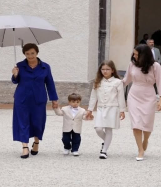 La sosirea oficială, familia Dan a oferit o imagine armonioasă: copiii au purtat haine elegante în tonalități deschise, caracteristice unui protocol sofisticat. Fiul cel mic a avut un sacou crem, pantaloni negri și o atitudine jucăușă; sora lui a purtat o rochie elegantă, ambele concepute pentru a reflecta sobrietatea necesară contextului. Mirabela Grădinaru a ales o ținută rafinată care i-a evidențiat feminitatea și sobrietatea, completând perfect atmosfera oficială.
