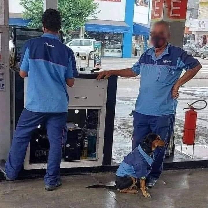 Mulți internauți au avut parte de un șoc să vadă un cățel fără stăpân, singur, înfometat și neajutorat. Patrupedul a fost ajutat de către angajații unei benzinării, a fost hrănit și…îmbrăcat. Imaginea a ajuns pe diferite grupuri de Facebook, unde iubitorii de animale au rămas plăcut surprinși să vadă că mai există oameni buni în lumea aceasta. Câinele a fost îmbrăcat cu o salopetă de muncă, de la benzinăria respectivă. Mai apoi, acesta a ”muncit” alături de angajați. I-a urmat pe aceștia oriunde au mers și le-a furat inimile clienților.