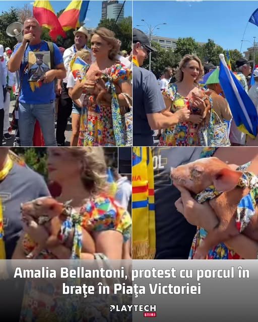 Duminică, Piața Victoriei din București a fost din nou scena unor manifestații tensionate. Sute de persoane au ieșit în stradă în cadrul protestului intitulat „Ieșiți din casă dacă vă pasă de România”, un eveniment organizat în sprijinul lui Călin Georgescu. Însă, ceea ce a atras cel mai mult atenția a fost apariția Amaliei Bellantoni, fosta concurentă de la Chefi la Cuțite, care a venit cu un porc în brațe, în mijlocul protestului.