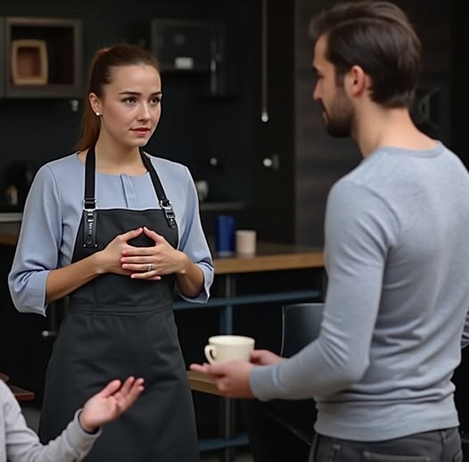 Maria a așezat tava cu băuturi pe masă, simțind cum toate privirile o străpung. Inima îi bătea cu putere, dar vocea îi rămase calmă, controlată.