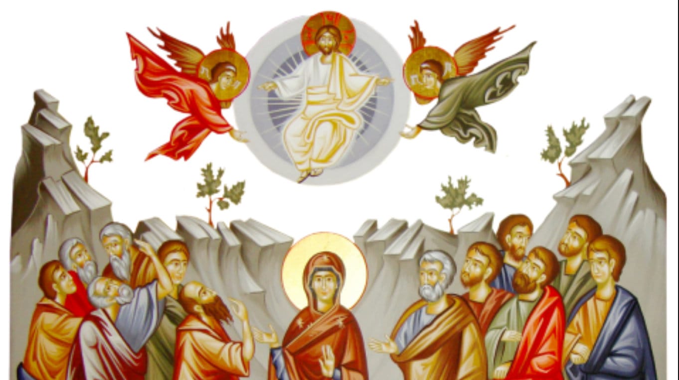 La patruzeci de zile dupa Inviere, in timp ce ii binecuvanta pe ucenicii Sai (Evanghelia dupa Luca 24:50-51), Hristos s-a inaltat la Cer, luandu-si locul de-a dreapta Tatalui.