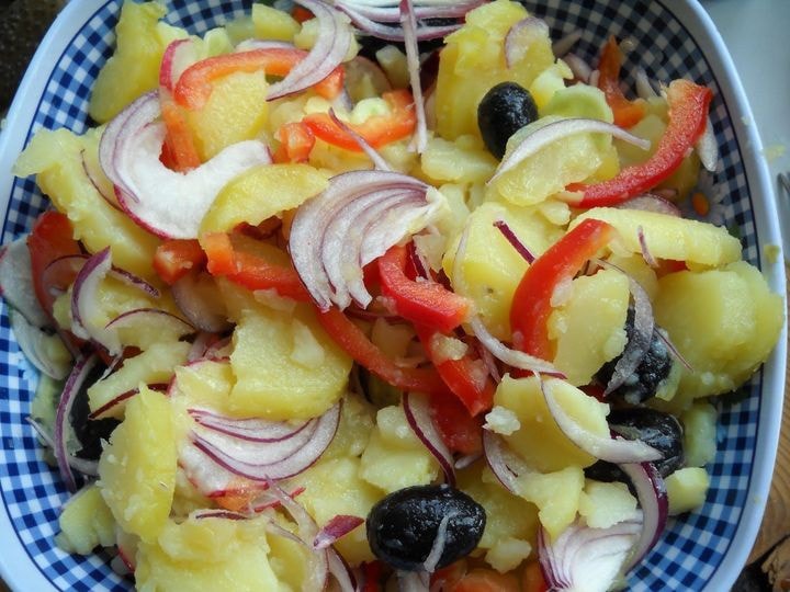 Pentru început, fierbem bine cartofii, dar trebuie să fim atenți să nu se crape. Putem testa dacă sunt gata cu ajutorul unei furculițe. Îi curățăm și îi tăiem în felii subțiri. Pentru urmărtorul pas, trăiem ceapa în felii subțiri.