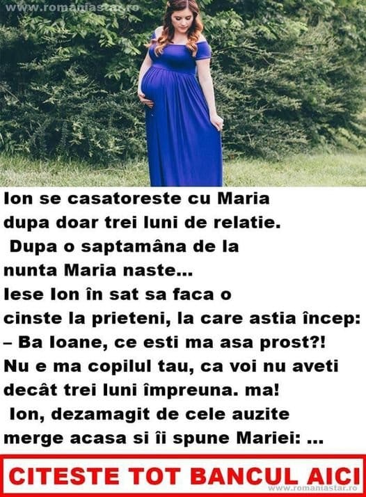– Mărie, toată lumea râde de mine că micuţul nu-i al meu, că noi nu avem decât trei luni împreună!