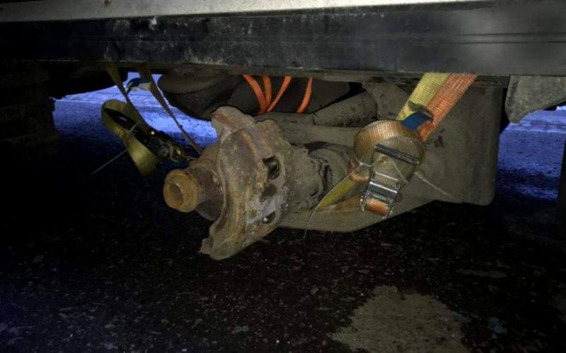 În timpul inspecției ulterioare, oamenii legii au găsit motivul. Pe a treia axă a camionului roata și frânele din partea dreaptă lipseau complet. În plus, suspensia era defectă, iar osia era legată cu chingi de ancorare.