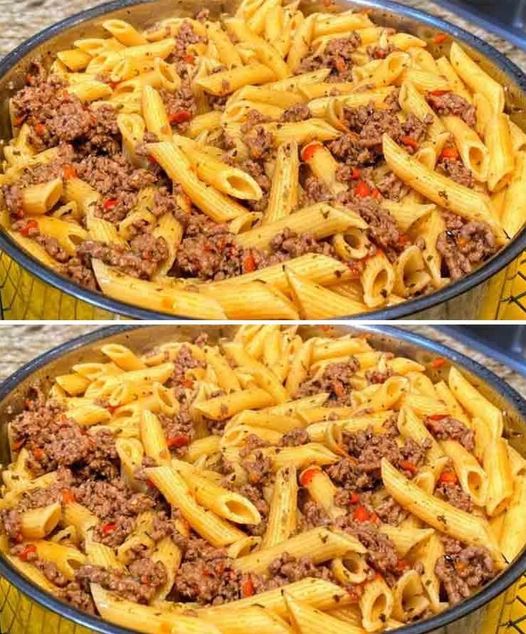 Adaugă pastele fierte în tigaie cu sosul de carne.