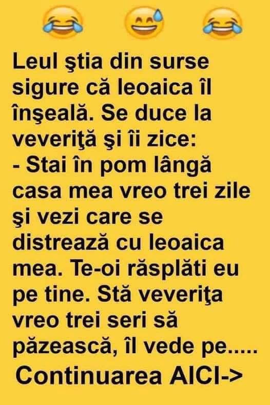 Leul ştia din surse sigure că leoaica îl înşeală. Se duce la veveriţă şi îi zice: