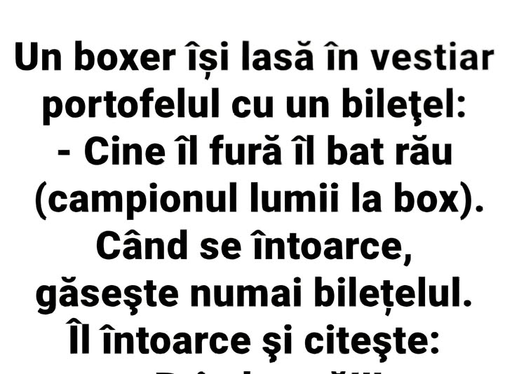 „Un boxer își lasă în vestiar portofelul cu un bilețel: