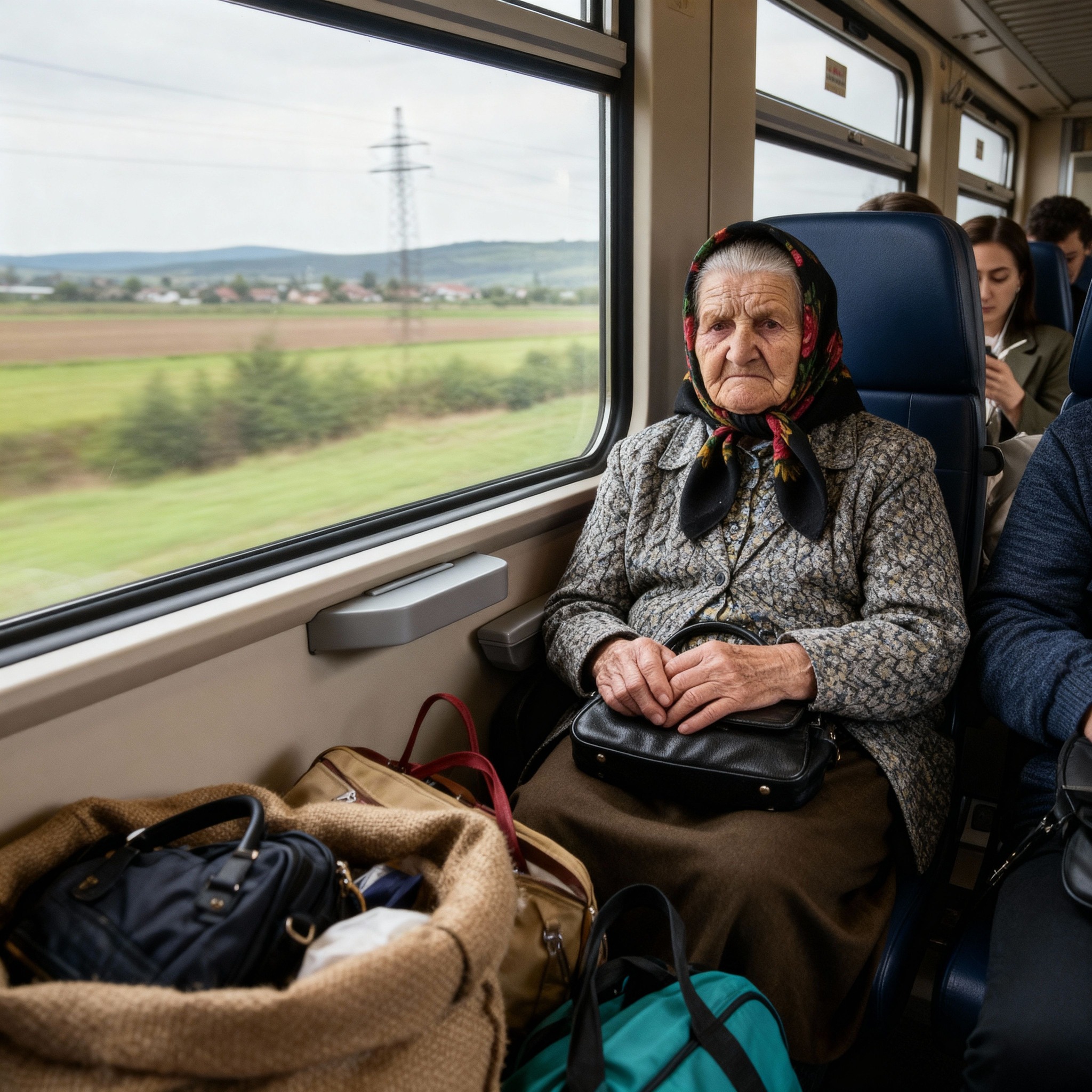 În tren, pasagerii mă privesc adesea ca și cum bagajele mele ar reprezenta o piedică. O femeie își trage geanta mai aproape, iar doi tineri se ascund în spatele telefoanelor. Nu mă deranjează. Ei văd doar o femeie în vârstă cu saci grei. Eu știu însă că fiecare sac conține luni întregi de muncă și toată afecțiunea mea pentru nepot.