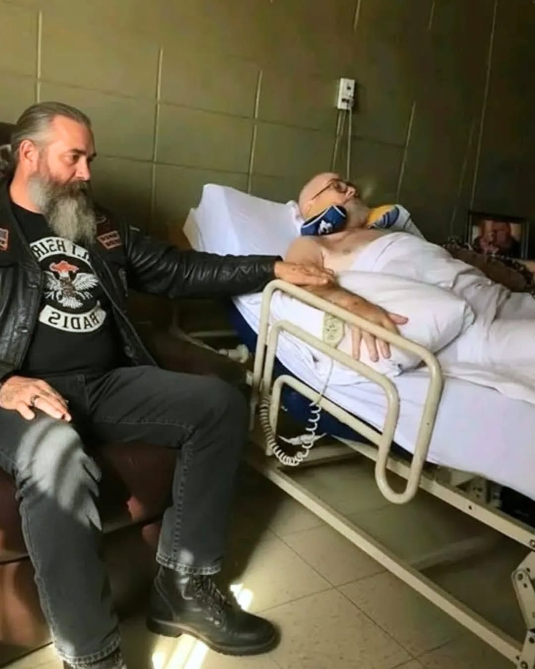 Într-o după-amiază, care avea să schimbe totul, în camera mea a intrat Marcus, un biker cu barbă, cu o inimă pe cât de mare îi era prezența. Înfățișarea lui îți sărea în ochi: îmbrăcat în piele neagră, cu veste pline de patch-uri care spuneau povești despre frăție și loialitate, emana o combinație de forță și bunătate. Privirea i-a căzut pe Purple Heart-ul așezat pe noptieră, simbol al serviciului și sacrificiului meu. S-a așezat lângă pat, cu o atitudine plină de respect, cum nu mai simțisem de la propriii mei copii.