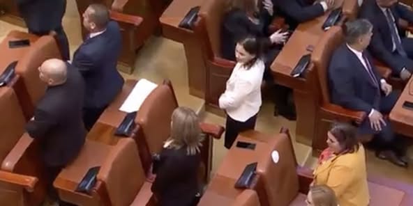 În timpul ceremoniei, parlamentarii SOS s-au întors cu spatele.