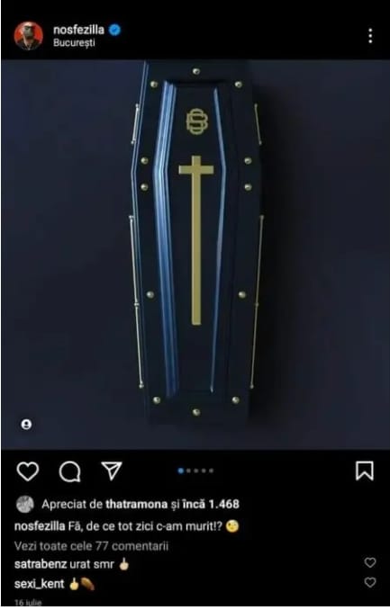 Acum câteva luni, în vară, Nosfe posta un mesaj legat de moarte pe pagina lui de Instagram, lucru care a dat de gândit multor fani de-ai lui.