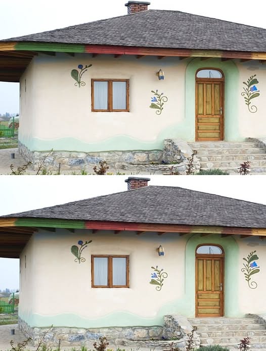 Dar uită-te la finisaje, cât de originale sunt, observă muchiile rotungite ale pereților și tâmplăriei interioare, vezi geamurile lor pictate de mână și admiră mozaicurile făcute cu bucăți de ceramică și pietricele decorative.