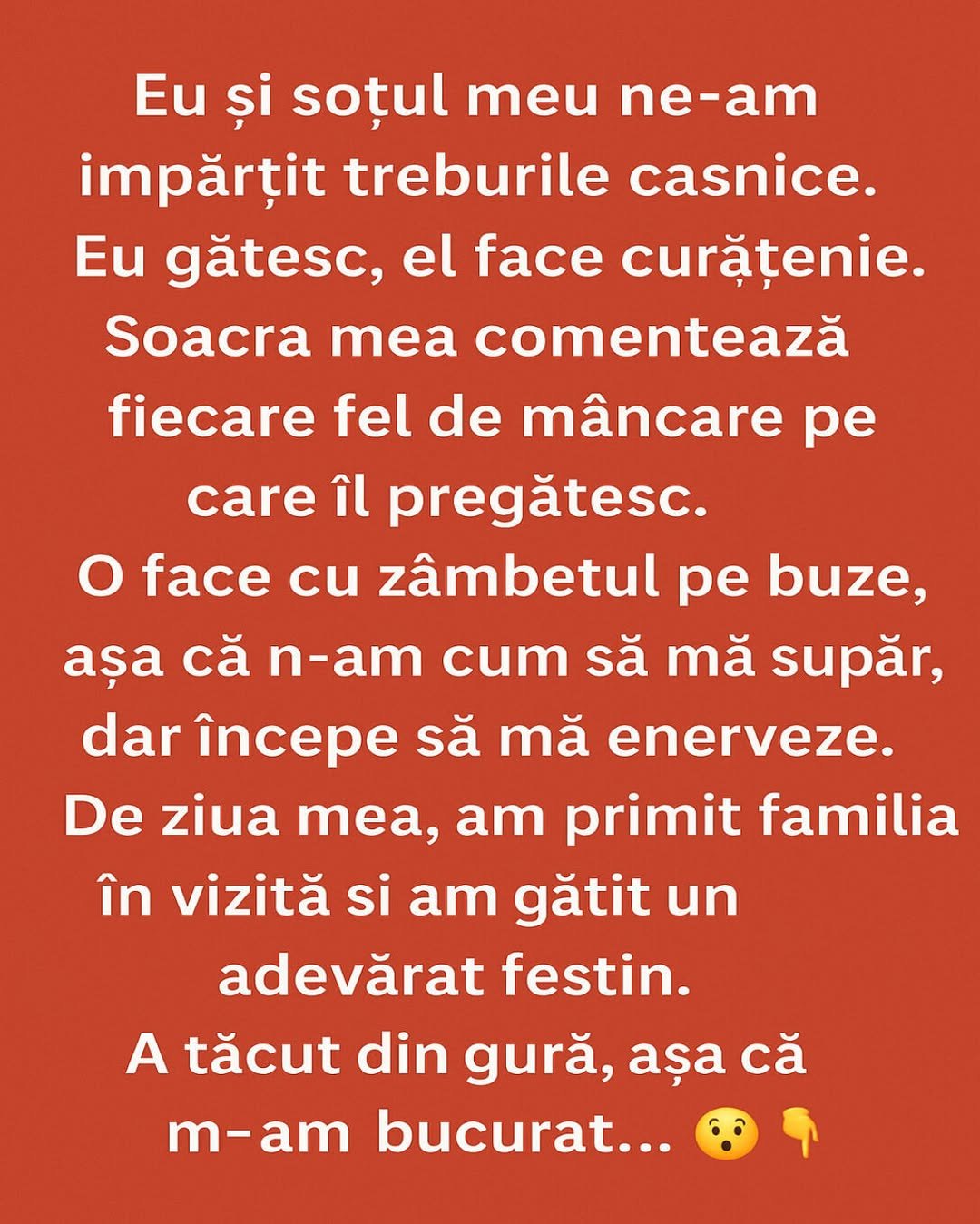 „L-am confruntat. A râs, a zis că era doar o glumă, că exagerez. Dar ceva mi s-a părut în neregulă. Și n-am vrut să aștept până se întâmpla ceva mai rău.”
