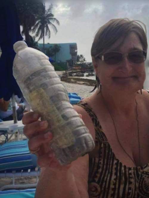 Judi Glunz Sidney era in concediu la Colony Beach din statul american Florida. Se plimba pe plaja atunci cand a dat peste o sticla de plastic.