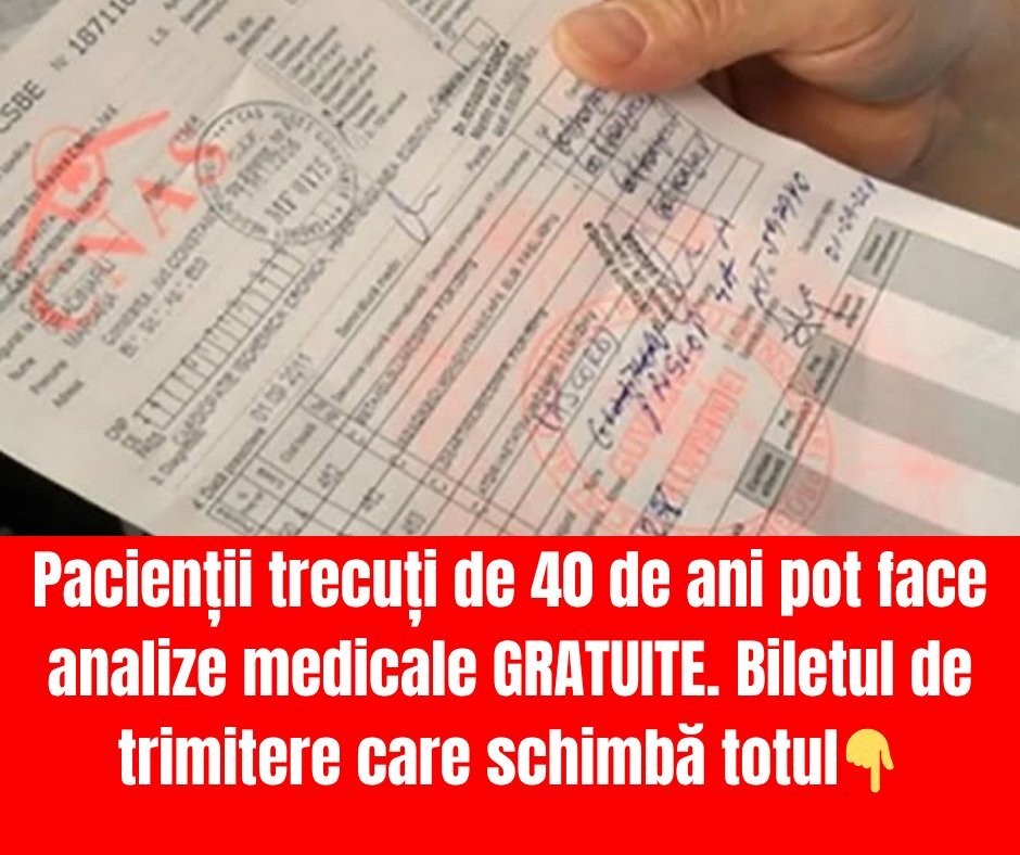 Pacienții trecuți de 40 de ani pot beneficia de analize medicale gratuite prin Casa de Asigurări de Sănătate (CAS), chiar dacă furnizorul a epuizat fondurile pentru luna respectivă, cu condiția ca pe biletul de trimitere să fie menționat termenul „Monitor” (însoțit de un cod de la 1 la 7) sau „Prev 5”.