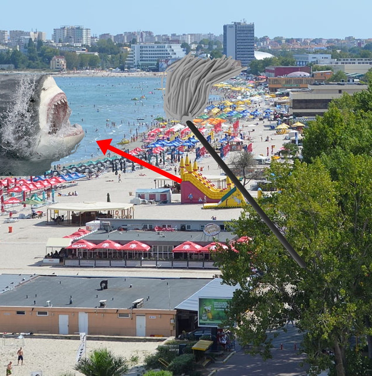 ”Peștele care a fost văzut pe plaja publică și despre care s-a crezut că este un rechin era, de fapt, un zărgan (țipar de mare).Conform experților, este o ființă inofensivă. De aceea, nu este nevoie să luați cu dvs un mop când intrați în apă, să faceți o baie”.