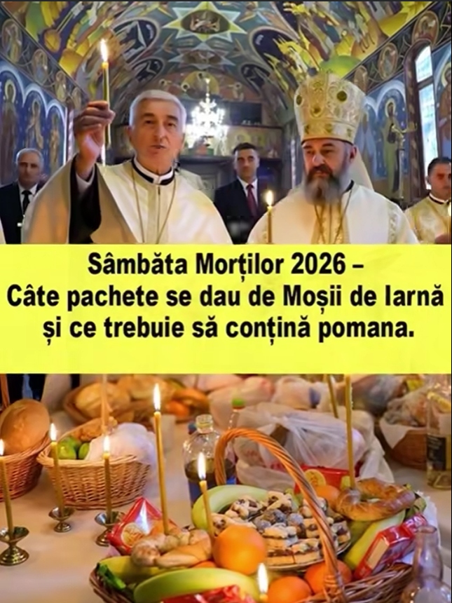 In anumite zone, pachetele pot contine si preparate traditionale precum placinta cu branza, orez cu lapte sau sarmale. Uneori se pune si un banut, simbol al norocului, iar credinta populara spune ca atat cei care dau, cat si cei care primesc pomana vor fi binecuvantati cu spor si belsug.”, a mai adaugat preotul