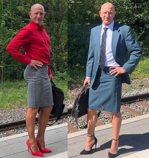 Prefer un look masculin în partea de sus a corpului și fuste cu tocuri în jos”, a declarat el într-un interviu pentru BoredPanda.com.